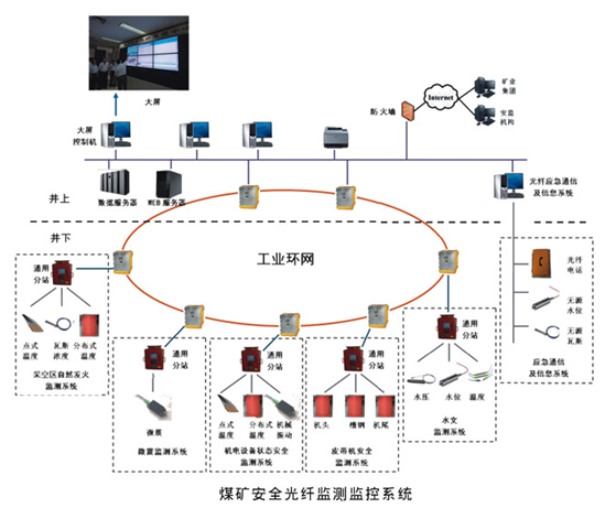 煤礦安全光纖監(jiān)測(cè)監(jiān)控系統(tǒng),對(duì)災(zāi)害隱患有關(guān)數(shù)據(jù)的實(shí)時(shí)監(jiān)測(cè)監(jiān)控是防治此類安全事故發(fā)生的有效途徑。本系統(tǒng)充分利用光纖傳感技術(shù)的優(yōu)勢(shì),將光纖傳感器用于對(duì)瓦斯動(dòng)態(tài)變化、微震、溫度、頂板壓力,火災(zāi)、水害等綜合信息進(jìn)行多點(diǎn)實(shí)時(shí)監(jiān)測(cè),形成了新一代的煤礦安全光纖監(jiān)測(cè)監(jiān)控系統(tǒng),將有效提高煤礦災(zāi)害預(yù)測(cè)預(yù)報(bào)的準(zhǔn)確性和前瞻性,對(duì)減少特大型煤礦安全事故、減少生命傷亡和財(cái)產(chǎn)損失具有革命性的意義。