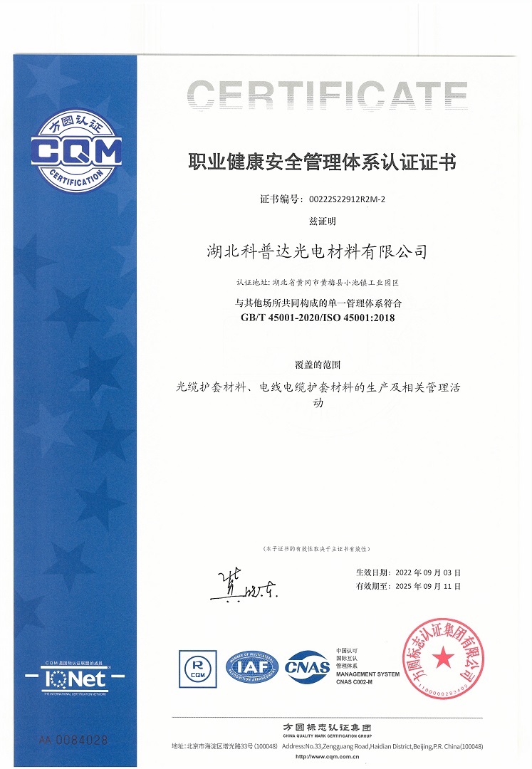 科普達產品主要有各種光纜護套料,榮獲湖北省名牌產品,守合同重信用企業。 榮獲多種國家資質認證包括:ISO9001質量管理體系認證、ISO14001環境管理體系及OHSAS18001職業健康安全管理體系認證。...